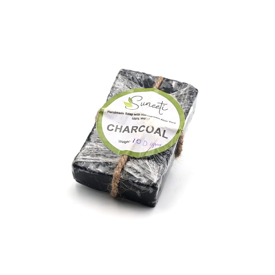 Discover the deep cleansing power of SUNEETI’s Natural Handmade Charcoal Soap Bar. This striking black soap bar comes elegantly wrapped with rustic jute rope, adding a touch of artisanal charm to your bathing experience. The activated charcoal in this soap helps draw out impurities from your skin, making it ideal for deep cleansing. Each bar is carefully handcrafted to maintain its natural properties. The distinctive dark colour and rough-hewn appearance speaks to its authentic, handmade nature, while the jute rope wrapping not only adds a beautiful aesthetic touch but also makes it easy to hang and store. Perfect for daily use, this soap bar offers a luxurious lather and refreshing cleanse. The natural ingredients make it suitable for various skin types. The thoughtful packaging design, featuring the Suneat branding, reflects the premium quality of this artisanal soap bar.